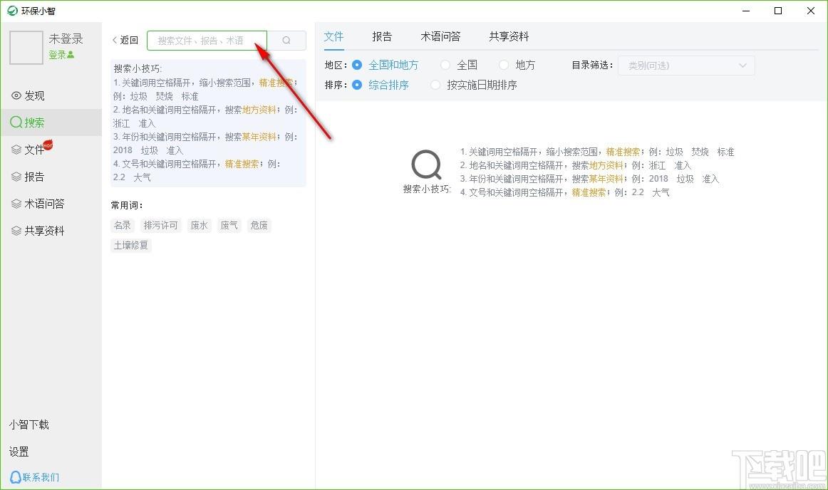 4、点击搜索,可搜索文件、报告、术语,还可查看搜索小技巧