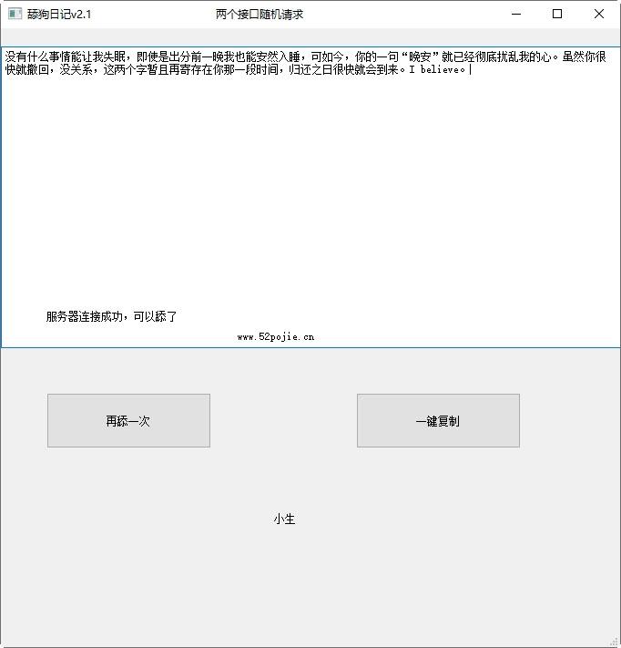 和大家分享最新的舔狗日记生成器2.1版本!这是一款PC端上的舔狗日记软件,只需轻轻一点,就可以生成各种不同风格的舔狗文章,又长又短,都透露出了舔狗舔到最后一无所有的凄凉与悲哀。如果你对这款工具感兴趣的话,那就快来西西下载体验吧!